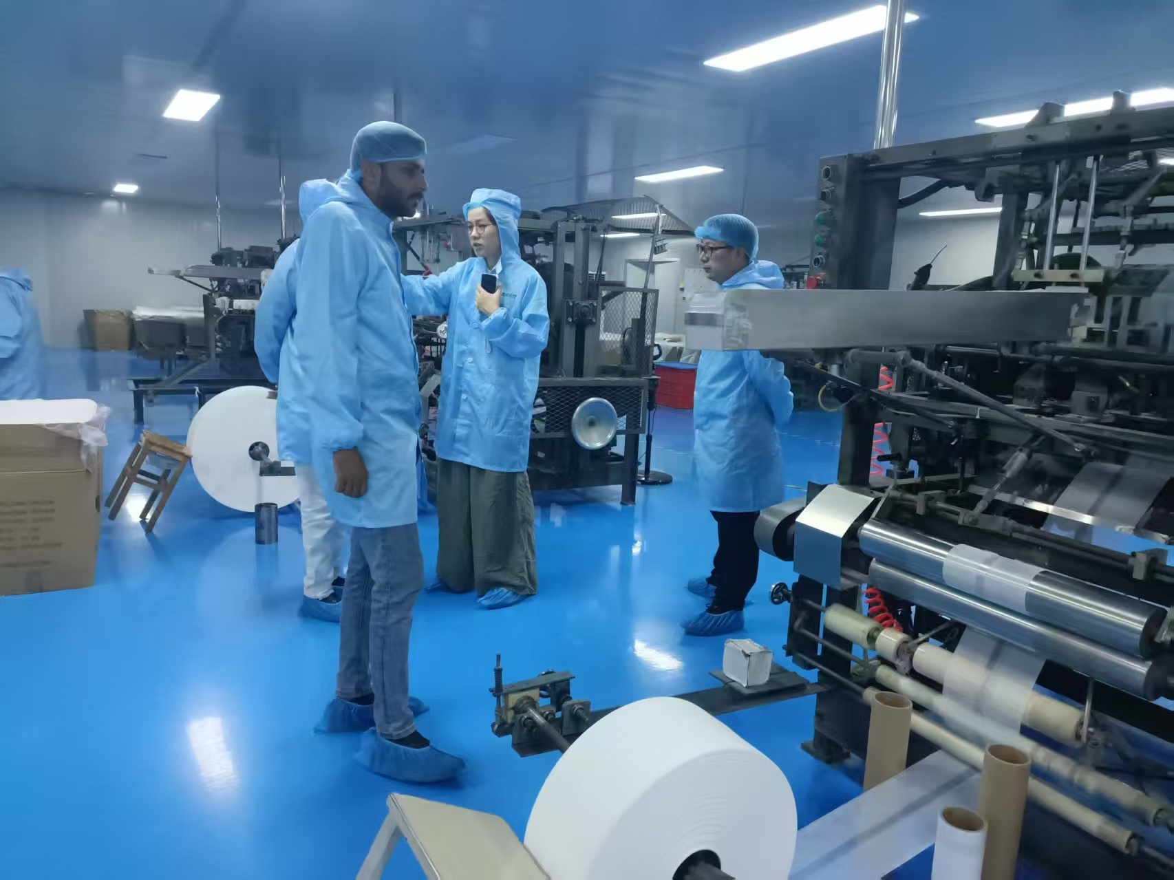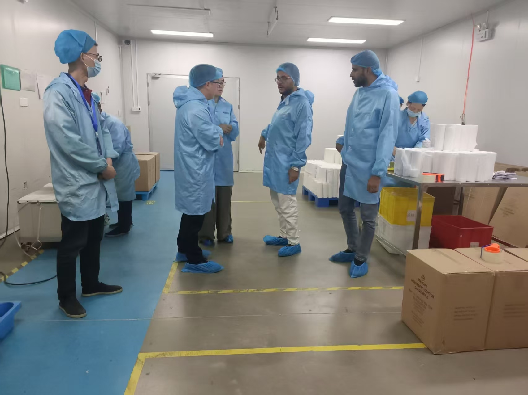 Ekskursijos metu mūsų Ugandos svečiai galėjo stebėti visą „Haorun Med“ pavyzdinių gaminių gamybos ciklą, įskaitant medicininių marlės tamponus, marlės tempelius, sterilius marlės tamponus ir dar daugiau. Jie glaudžiai bendravo su mūsų atsidavusiais gamybos technikais ir įgijo vertingų įžvalgų apie mūsų kokybės kontrolės protokolus.